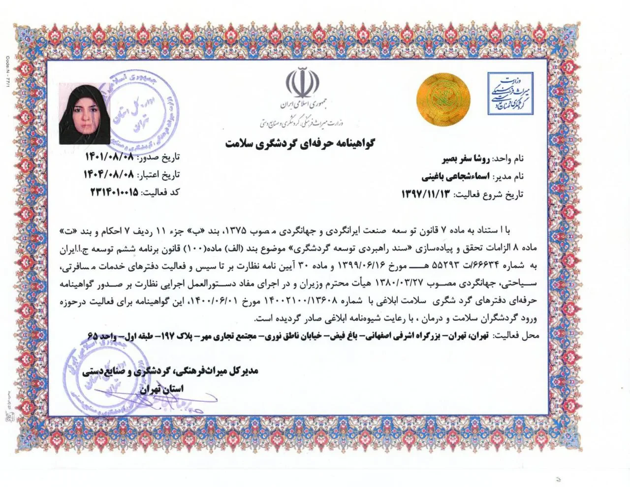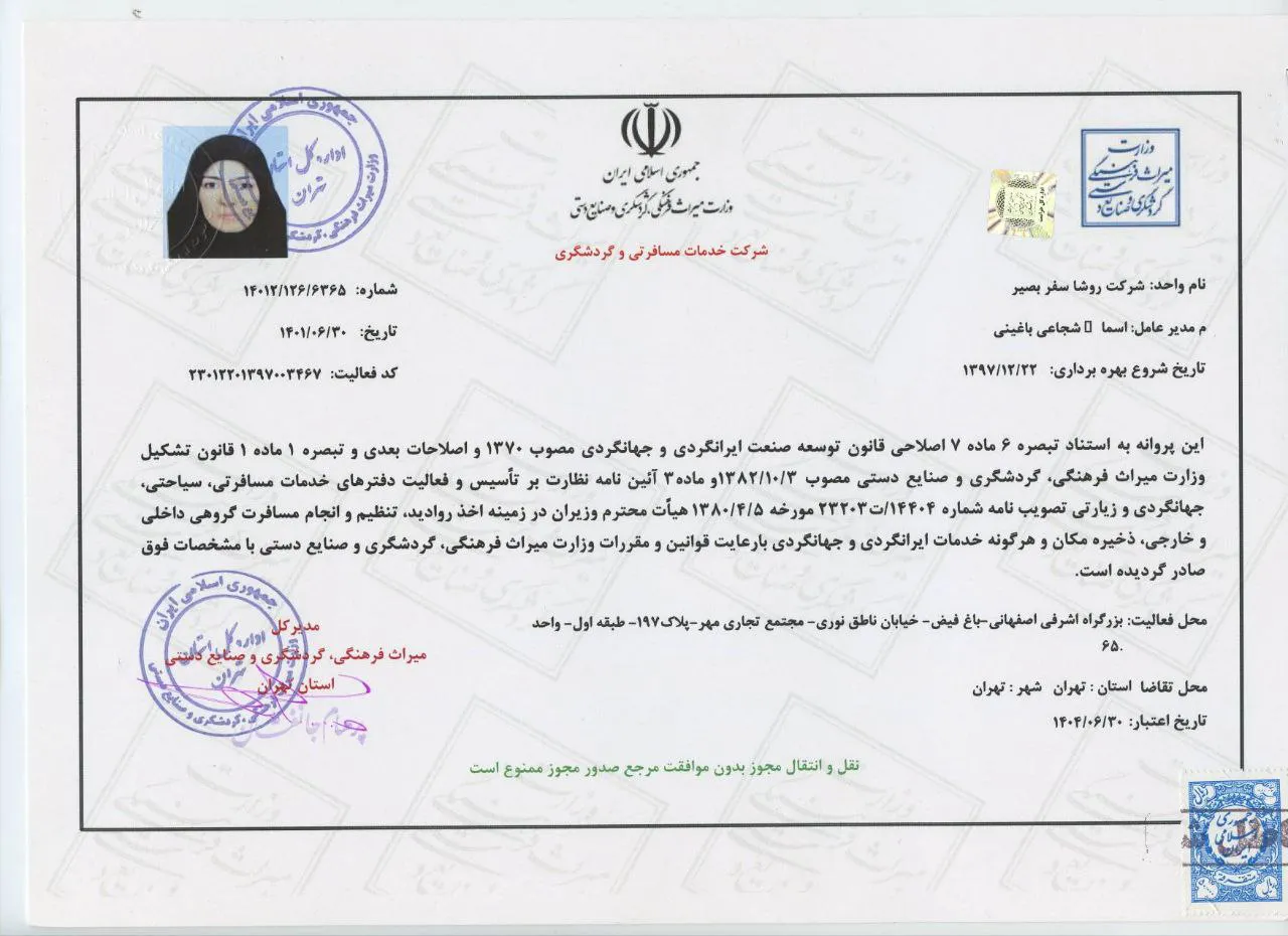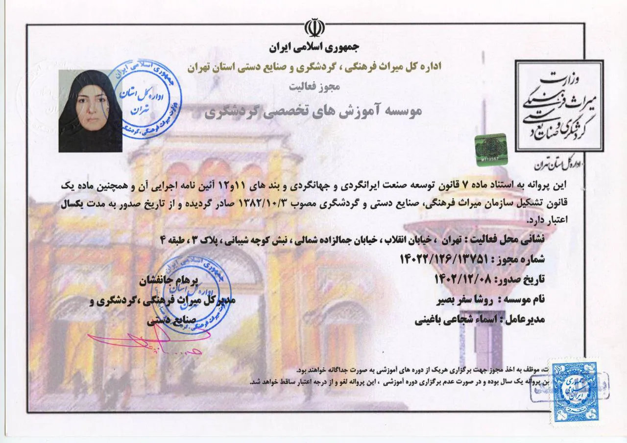 ارائه خدمات استاندارد، ایمن و یکپارچه در حوزه گردشگری با هدف افزایش رضایت مسافران داخلی و خارجی.